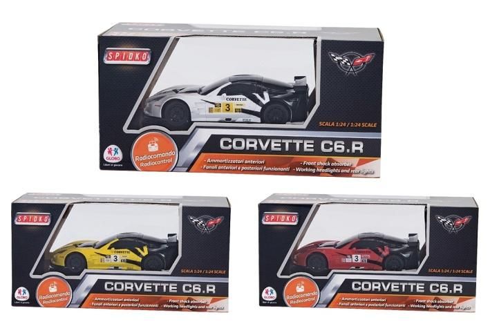 Auto na dálkové ovládání Corvette v měřítku 1:24. Funkční přední světla, přední tlumič, gumové pneumatiky, vyrovnávací zařízení. Maximální rychlost 15 km/h. Frekvence 27 MHz, frekvenční pásmo 27.145 M, maximální radiofrekvenčí výkon 0.45 mW. Dosah dálkového ovládání 15–20 m. Na výběr ve třech barvách. Auto – 3 × 1.5V AA baterie Ovladač – 2 × 1.5V AA baterie Na baterie: 5x AA (nejsou součástí balení)