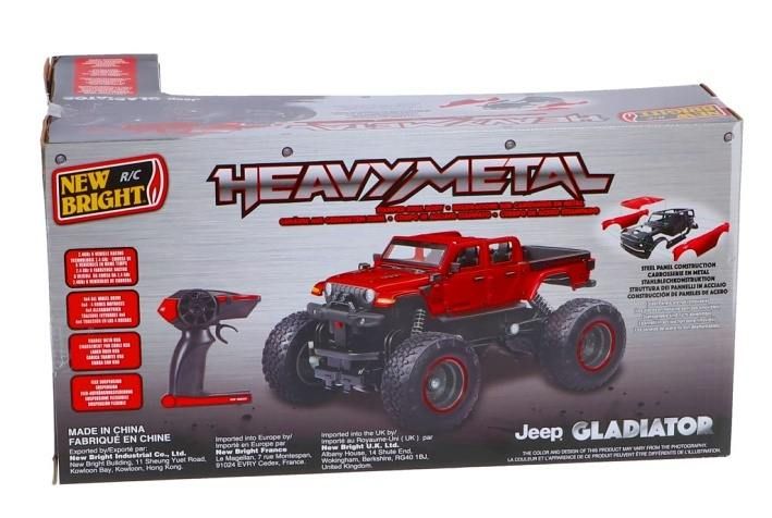 R/C Jeep Gladiator 1:18 – kovové, červené auto na dálkové ovládání, 4×4, nabíjení pomocí USB. Na baterie: 2x AA (jsou součástí balení)