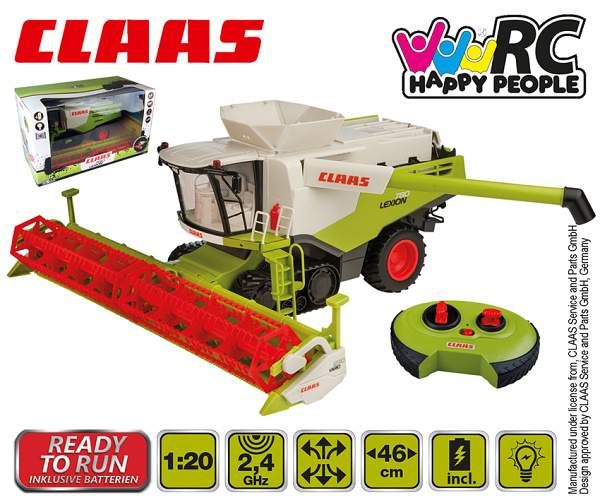 Kombajn CLAAS LEXION je věrnou kopií skutečného kombajnu. Má plnou funkci řízení a řazení. Funkční přední a zadní světla. Otočná kola, mechanická sekačka, výkyvná výstupní trubka a uzavíratelná nádrž na obilí. Kombajn je na dálkové ovládání s frekvencí 2,4 GHz. Kombajn je na baterie 4xAA, ovladač 2xAAA. Baterie jsou součástí balení. Vhodné pro děti od 6 let.