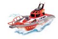 Záchranářská loď na dálkové ovládání, 3 kanály, frekvence 2,4 GHz, funkce turbo, funkční vodní stříkací dělo, rychlost až 3 km/h, součástí nabíjecí kabel USB, voděodolný spínač. Délka 38 cm.