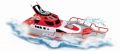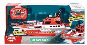 Záchranářská loď na dálkové ovládání, 3 kanály, frekvence 2,4 GHz, funkce turbo, funkční vodní stříkací dělo, rychlost až 3 km/h, součástí nabíjecí kabel USB, voděodolný spínač. Délka 38 cm.