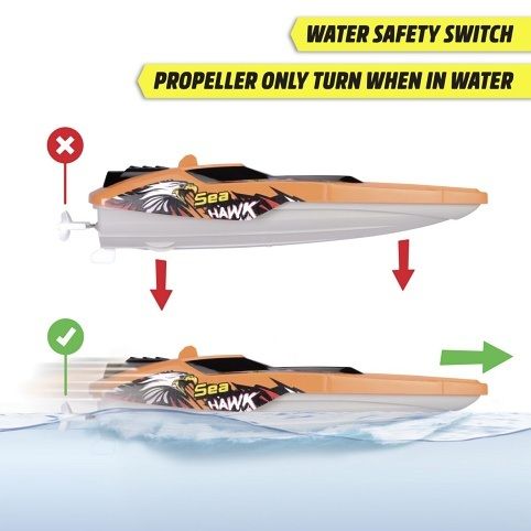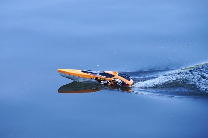 Loď na dálkové ovládání, 2 kanály. Vodotěsný ovladač. Zvýšení rychlosti. Max. rychlost 4 km/h. Frekvence 2.4 GHz. Nabíjení pomocí USB 45 min., doba jízdy 20 min. Měřítko 1:36. Délka 33 cm. Barva oranžová.