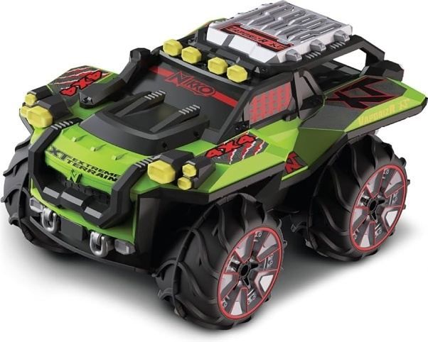 Připrav se na akční jízdu v jakémkoli terénu s Nikko VaporizR XT! Toto dálkově ovládané auto zvládne jízdu po souši, v blátě, po sněhu a dokonce i po vodě – díky čtyřkolovému pohonu a obojživelné konstrukci. S rychlostí až 15 km/h a precizním ovládáním je ideální pro všechny malé i velké dobrodruhy. 4×4 pohon pro jízdu v terénu i na vodě. Obojživelný design – jezdí po zemi i plave.Dálkové ovládání 2,4 GHz – až 10 aut najednou bez rušení. Rychlost až 15 km/h. Plně nabíjecí – baterie a nabíječka jsou součástí balení. Na baterie: 3x AAA (nejsou součástí balení), 1x 3,7V (je součástí balení)