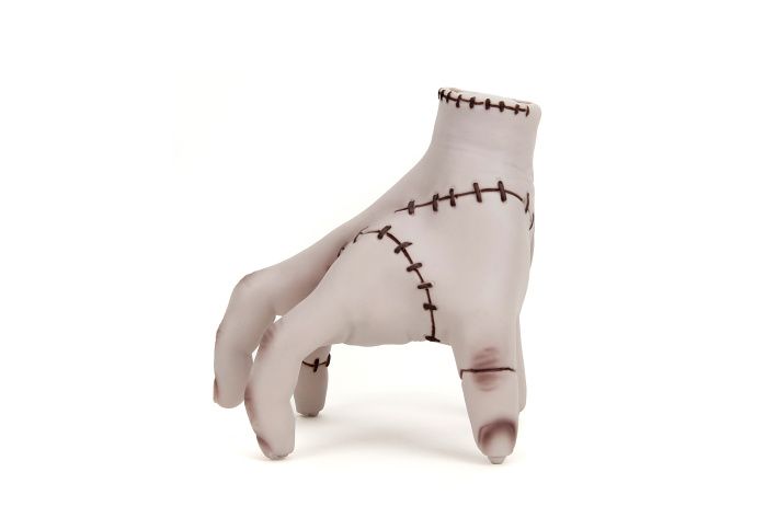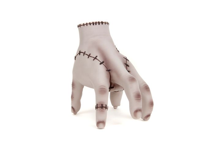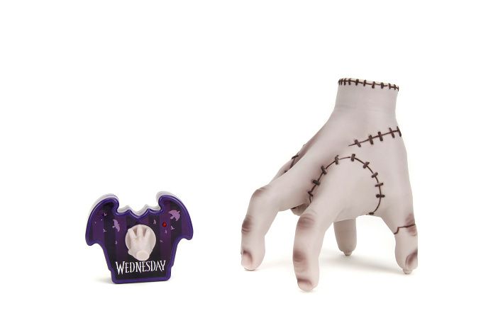 Animovaná lezoucí ruka - Věc na dálkové ovládání z filmu Wednesday. 2 kanály (pohyb vpřed, vzad, vlevo a vpravo). Frekvence 2,4 GHz. Dobíjení prostřednictvím USB. Velikost 18 cm.