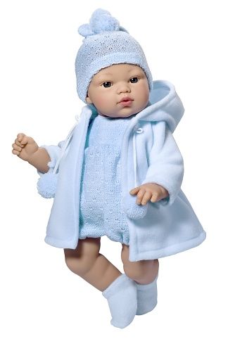 Krásné realistické miminko chlapeček Koke, chlapečkem je jenom podle oblečku, panenky s látkovým tělíčkem nemají vyznačené pohlaví. Koke je vyrobeno firmou Asivil ve Španělsku. Miminko je dlouhé 36 cm a má měkké - látkové tělíčko, hlava a končetiny jsou vyrobeny z vinylu. Koke nemá vlásky, má nemrkací akrylové oči hnědé barvy. Koke je oblečený do modrého pleteného overálku bez rukávů a nohavic, přes který má teplý modrý kabátek zavazovaný u krku na bambulky. Na hlavě má pletenou čepičku a na nohou světle modré ponožky. Asivil je rodinný podnik, který se více jak 50 let pyšní výrobou vysoce kvalitních panenek, známých pod značkou ASI. Panenky jsou ještě krásnější tím, že se firma zavázala ke 100% španělské řemeslné výrobě, splňující všechny evropské výrobní normy. Jejich produkty kombinují tradici i moderní trendy. Panenka je balena v dárkové krabici a splňuje bezpečnostní a zdravotní normy (CE). Doporučeno pro děti od 3 let.