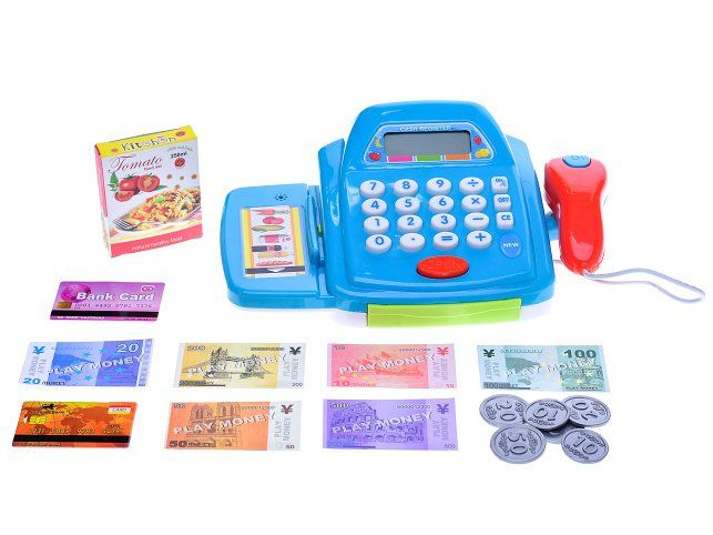 Registrační pokladna 22x14cm se scanerem a penězi na baterie se světlem a zvukem 2barvy