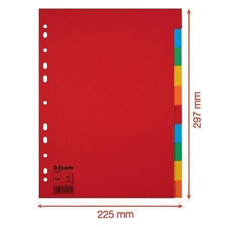 Rejstříky "Economy", mix barev, karton, A4, 10 dílů, ESSELTE