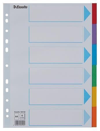 Rejstříky "Standard", popisovatelná titulní str., mix barev, karton, A4, 6 dílů, ESSELTE