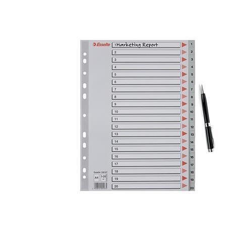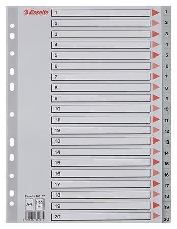 Rejstříky, šedá, A4, plast, 1-20, ESSELTE