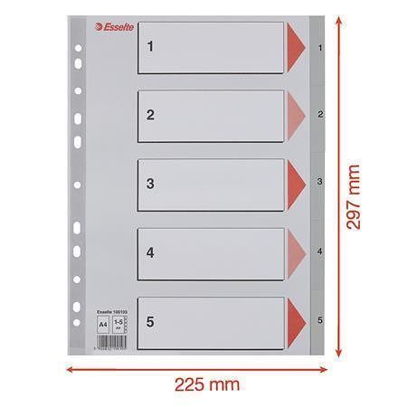 Rejstříky, šedá, A4, plast, 1-5, ESSELTE