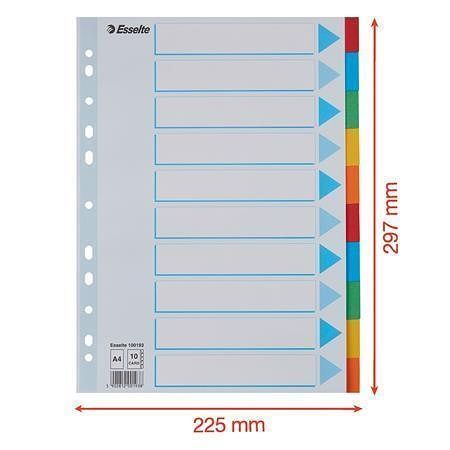Rejstříky "Standard", popisovatelná titulní str., mix barev, karton, A4, 10 dílů, ESSELTE