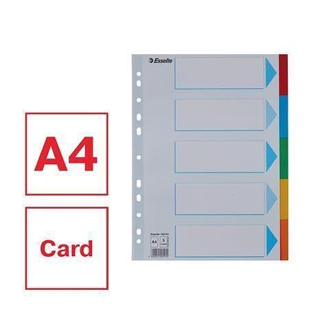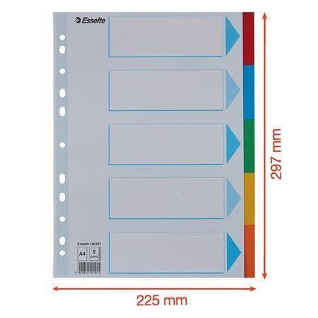 Rejstříky "Standard", popisovatelná titulní str., mix barev, karton, A4, 5 dílů, ESSELTE