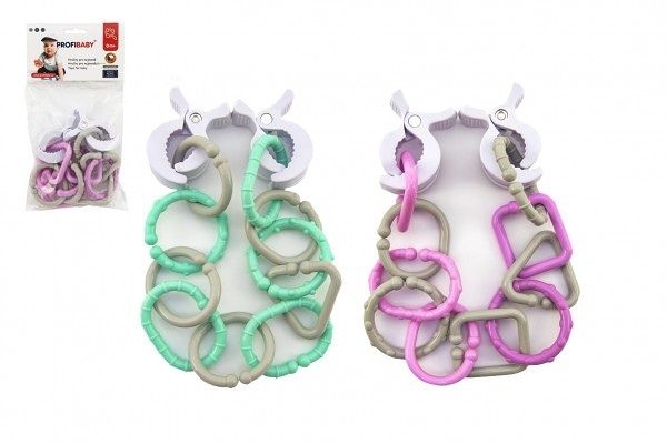 Plastový řetěz pro nejmenší. Řetěz je tvořen 10 dílky různých geometrických tvarů, ukončen je klipy k jednoduchému zavěšení na kočárek. Pestrobarevná hračka miminko okamžitě zaujme a zabaví na dlouhou dobu.