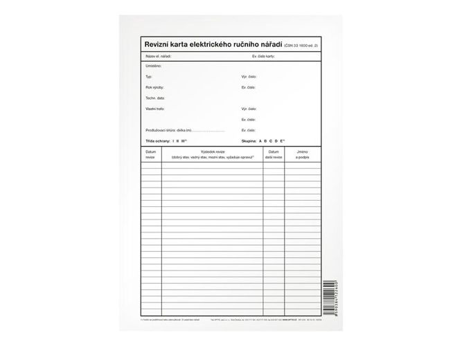 Revizní karta elektrického přenosného nářadí, A4, OPTYS 1226