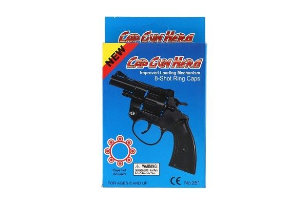 Revolver/pistole na kapsle 8 ran plast 13cm v krabičce 9,5x16x2,5cm