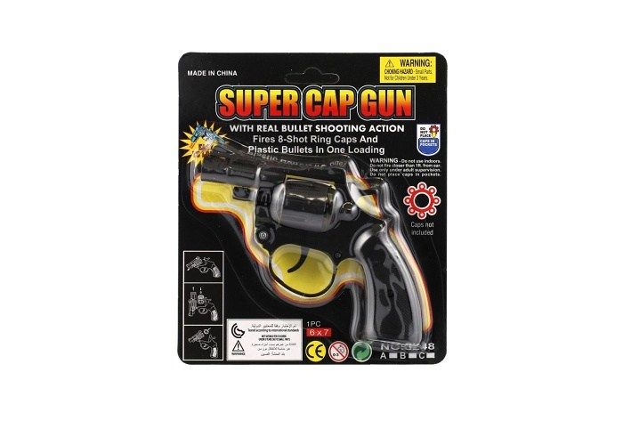 Revolver/pistole na kapsle 8 ran plast 13cm na kartě 15x18x2cm