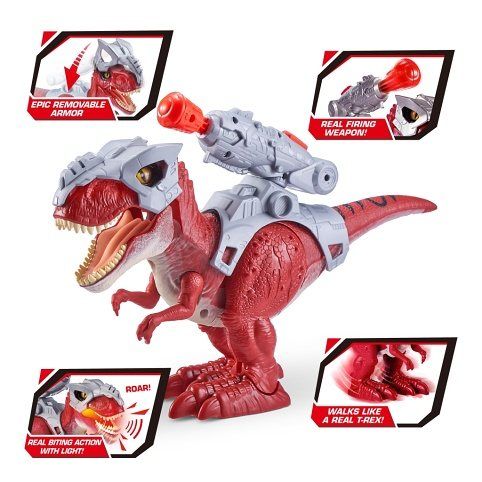 Připravte se na epickou Dino bitvu! Nový Robo Alive Dino je postaven s pokročilou robotickou technologií S realistickým řevem a realistickým pohybem dinosaurů to není obyčejný mazlíček. Nasaďte si obranné brnění, nabijte Dino Blaster a bojujte. Díky funkcím osvětlení může tento T-Rex dokonce běhat a lovit ve tmě! Je to víc než živé, je to Robo Alive! Na baterie: 2x LR41 (nejsou součástí balení)