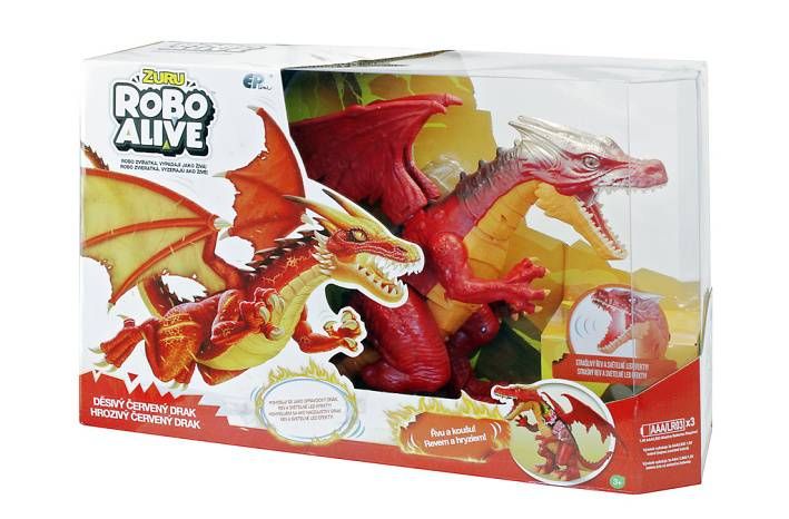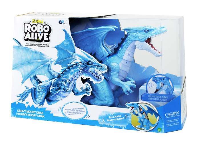 Modrý a červený drak vypadá jako ze strašidelné pohádky. Chodí, hrozivě otvírá tlamu a vydává zvuky. V tlamě mu svítí červené světlo, které připomíná oheň. Jeho oči se třpytí jako oči živého zvířete. Vypadá opravdu realisticky. Je krásně zbarvený se spoustou detailů a kvalitním zpracováním.