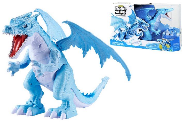 Modrý drak vypadá jako ze strašidelné pohádky. Chodí, hrozivě otvírá tlamu a vydává zvuky. V tlamě mu svítí červené světlo, které připomíná oheň. Jeho oči se třpytí jako oči živého zvířete. Vypadá opravdu realisticky. Je krásně zbarvený se spoustou detailů a kvalitním zpracováním.