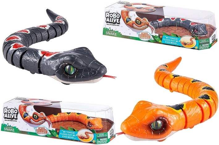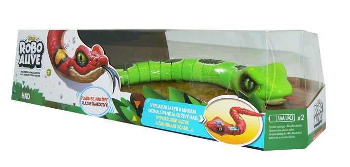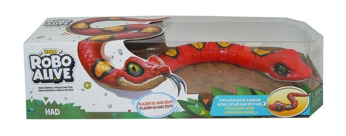 Představujeme vám jedinečnou novinku z řady výrobků ROBO. Tito hadi vypadají opravdu jako živí. Položte je na zem a sleduje, jak se plazí. Vlní se na zemi stejně, jako tito živí plazi. Pokud je chytnete za ocas, díky speciálním senzorům okamžitě znehybní. Mají tak krásné realistické oči a úžasné zbarvení. Když se plazí, vystrkují a zastrhují jazyk, jako opravdoví hadi.