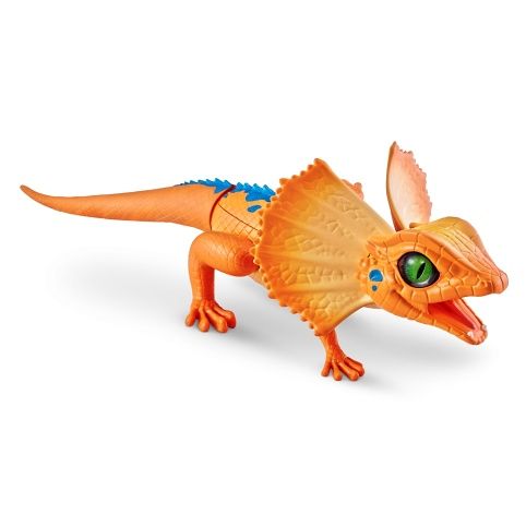 Robo Alive Robotická oranžová ještěrka. Oranžová ještěrka s modrými skvrnami vypadá jako živá. Může skutečně chodit, běhat a pohybovat hlavou. Na baterie: 2x AA (nejsou součástí balení)