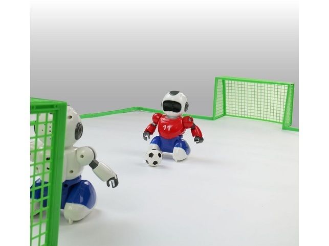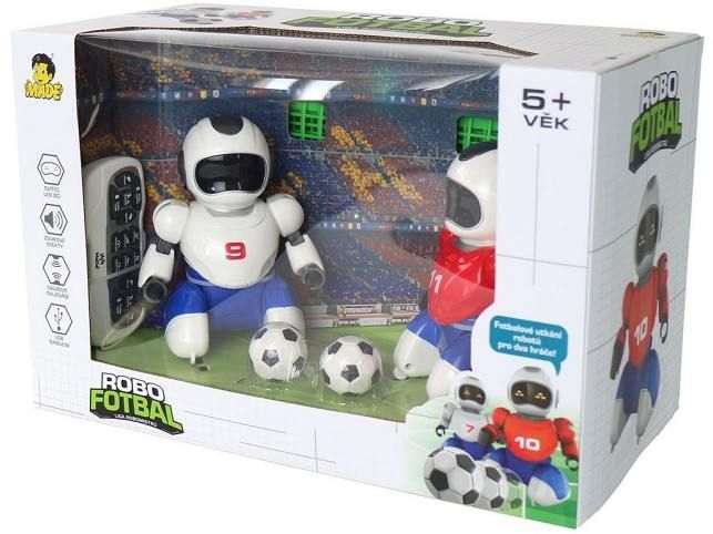 Robofotbal je zábavná hra, kterou si můžete zahrát s rodinou či kamarádem. Pořádat turnaj v robofotbalu pobaví celou rodinu!Roboti se každý zvlášt ovládají dálkovým ovladačem. Cílem je dopravit míč do branky soupeře. Skvělá hračka pro milovníky fotbalu, robotických hraček a nových technologií.** 17 funkcí** pohyb do všech směrů** ovladače pro 2 hráče** nastavení rychlosti** nastavení hlasitosti** dvě branky a míče** dálkové ovládání** svítící LED oči** uSB nabíjení** demoSoučástí balení jsou: 2 míčky, 2 branky, 2 ovládání, 2 roboti, 2x USB kabel na dobíjení, 1x návod