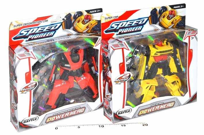 Autorobot 15 cm. Balení obsahuje 2 zbraně, 2 ast - červený, žlutý