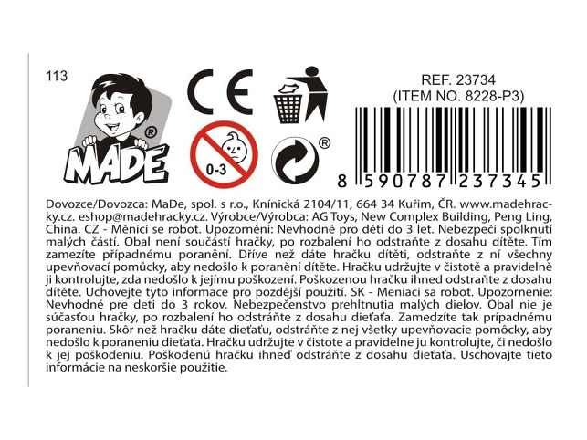 Tento robot bojovník je vyroben z kvalitního plastu a má rozměry 25 x 8 x 29 cm. Je vhodný pro kluky od 3 let a nabízí zábavu plnou akce. S výškou 25 cm se snadno vejde do každého dětského pokoje. Jeho šířka 8 cm a hloubka 29 cm zajišťují stabilitu během bojových scén. Robot nepotřebuje baterie a je dodáván v praktickém boxu. Skvělý dárek pro malé bojovníky, kteří si rádi hrají na superhrdiny.