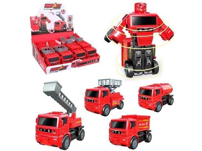 Robot - hasičská auta, měnící se, na setrvačník, 11,5 x 6,5 x 8,5 cm. Auto nebo robot? Můžeš si vybrat během své hry s čím si chceš hrát. Hračka je určena pro děti 3+. Rozměr hračky je 11,5 x 6,5 x 8,5 cm. Materiál hračky je plast. Balení hračky je display box. Produkt je určený pro kluky.