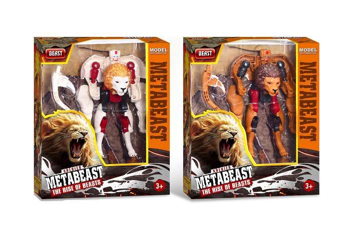 Robot lev Metabeast. Rozměry 15,5x5,5x9,5 cm. 2 varianty - bílá, žlutá. Obsah balení - robot, zbraně. Robot se může složit na lva.