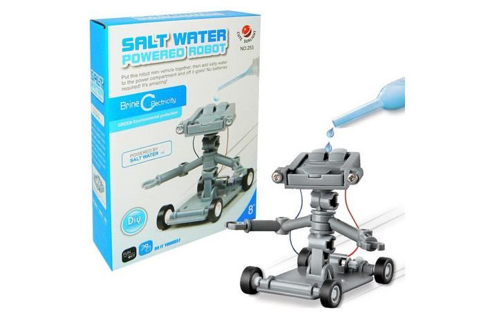 Bambule vám přináší novinku Robot na slanou vodu. Zážitkem je pozorovat jak pouze díky kápnuté slané vodě do vrchní části robota začne robot jezdit. Rozměry: 6 × 8 × 6 cm. Věk 8+.