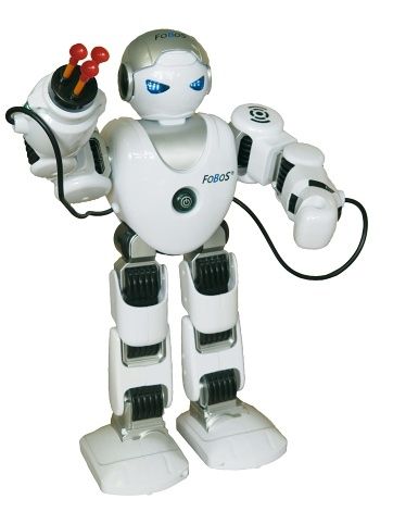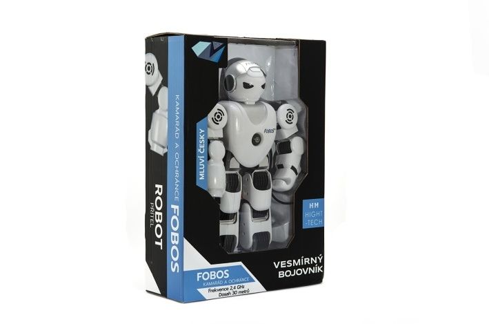 Robot FOBOS - vesmírný kamarád a ochránce, který mluví česky, ovládá robojazyk, střílí, tančí a hraje. Lze ho ovládat pomocí infračerveného dálkového ovladače, dosah je až 30 m. Po spuštění robota se jeho oči rozsvítí, uslyšíte kosmické zvuky a poté začne česky mluvit. Fobos hýbe pažemi, chodí pohybem nohou - plynule se posouvá i otáčí. S FOBOSEM se můžete stát programátorem. Pomocí funkcí na ovladači mu navolíte různé kroky a bude Vám dělat společnost i bez ovladače. Zapamatuje si až 50 příkazů.