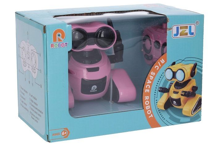 Robot RC na dálkové ovládání. Rozměry 13x8,5x13 cm. Ovládání ovladačem a gesty. Světelné a zvukové efekty. Ovladač - pohyb dopředu a dozadu, otáčení doleva a doprava, světlo (4 módy), zvuk (3 melodie), akční zvuk, demo režim, tlačítko pohybové ovládání/ON/OFF. USB kabel součástí. Přepínač ON/OFF na zádech robota. 3. 7V bateriový pack do robota součástí, 2xAA do ovladače součástí.