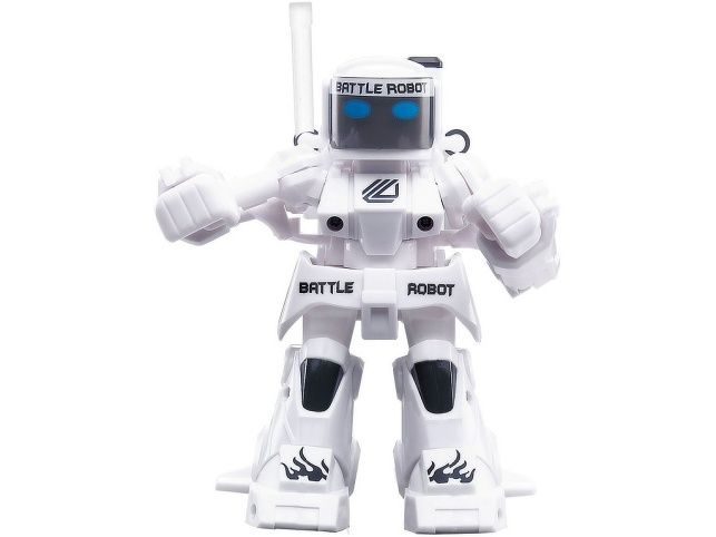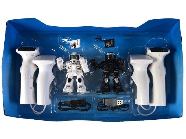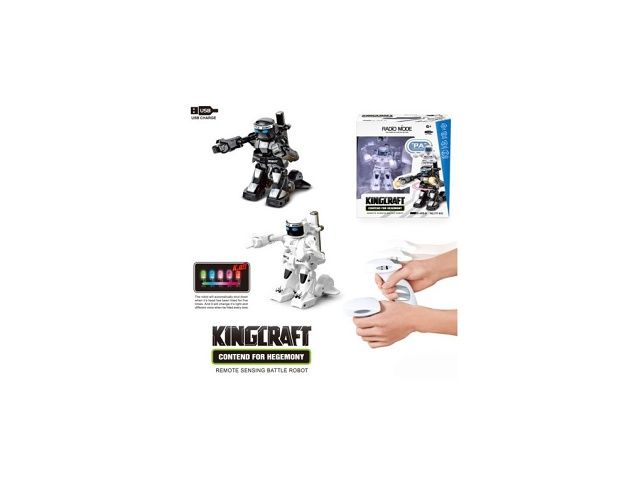 Ultimátní zápas dálkově ovládaných robotů. Dva roboti, každý se svým vlastním ovladačem, bojují proti sobě. Robot reaguje na pohyb ovladačů, které hráč drží v ruce. Údery levou a pravou pěstí, bojový výpad nebo útočná otočka, to jsou prostředky k boji se soupeřem. Barva LED diody informuje o kondici bojovníka. Jestliže je robot 5 x zasažen automaticky se vypne. Napájení zabudovaných baterií robotů přes USB kabel. Frekvence ovladačů pracují na 2,4 GHz. Rozměr boxu je 36 x 20 x 9 cm. Velikost robotů cca 10 cm. HJračka je vhodná pro děti od 6 let.