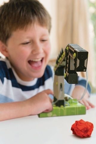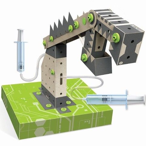 Tento mechanismus bagru je opatřen pohyblivým ramenem a lopatou, které lze ovládat pomocí dvou injekčních stříkaček.