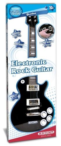 Elektronická rocková kytara „Gibson“ – můžeš si vybrat s 8 demosongů nebo 2 demo songy a 2 rytmy, 3 zvůkové efekty, kontrola hlasitosti, pás přes rameno, automatické vypínání.