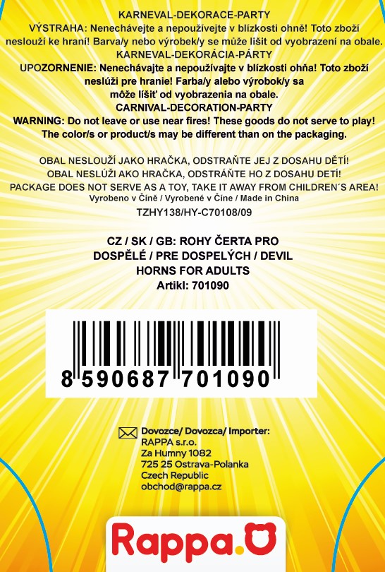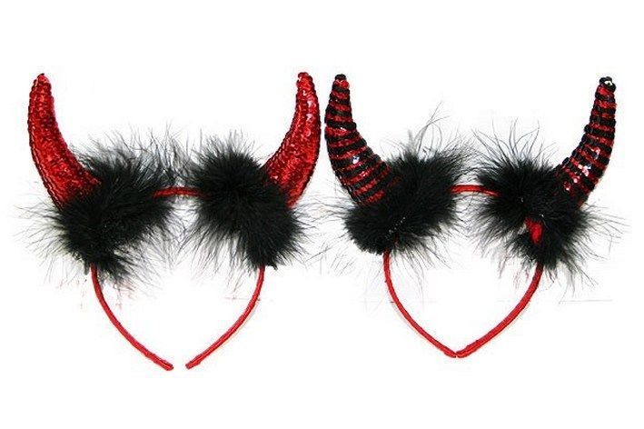 Rohy čerta s peřím a flitry, 2druhy (čertovské rohy)