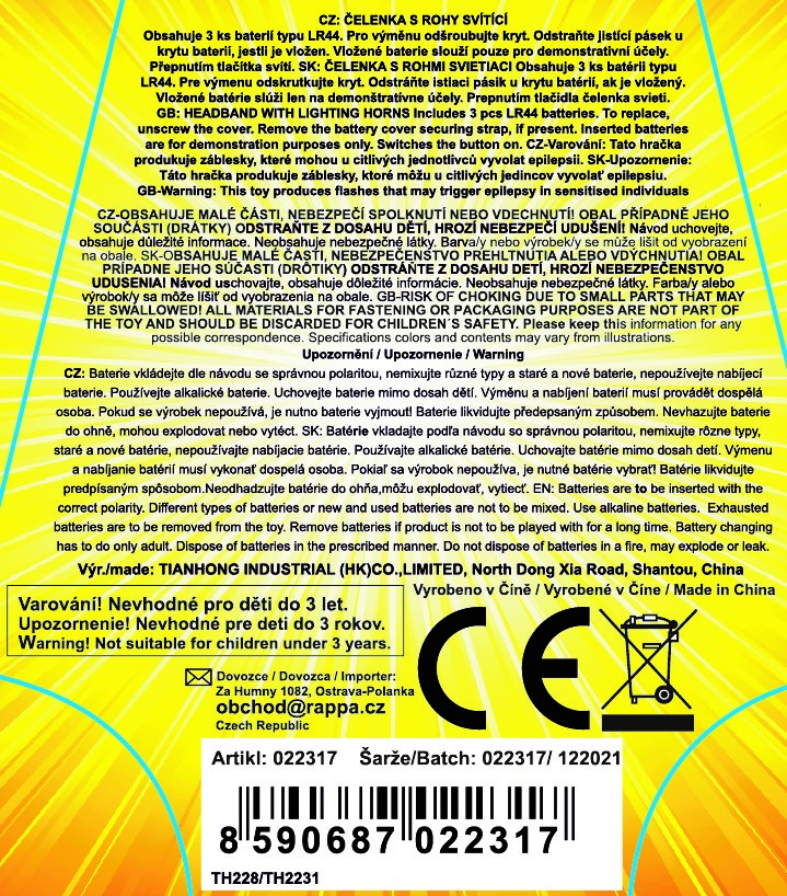 Parádní čelenka se svíticími čertími rohy je senzačním doplňkem na karnevalový večírek nebo vánoční besídku! Čelenka obsahuje 3 ks baterií typu LR44 a po přepnutí tlačítka bliká. Staň se nepřehlédnutelnou hvězdou večírku díky této úchvatné čelence a ohrom všechny své kamarády!