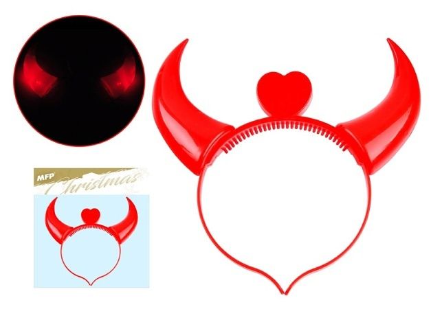 Svítící čertovské rohy - Vánoce bez čerta, jakoby nebyly. Pořiďte si tyto krásné čertovské rohy, které budou skvělým doplňkem pro Váš ďábelský kostým Rohy mají spínač s možností zapnoout a vypnout. Tyto rohy napájí dvě knoflíkové baterie LR41. Baterie se dají vyměnit a jsou součástí balení. Uvedená cena je za 1 ks.