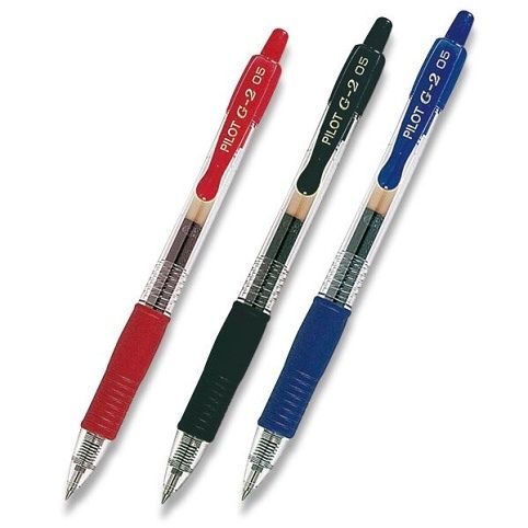Patentní gelový roller Pilot G-2 s vyměnitelnou náplní má ergonomicky tvarovanou pogumovanou rukojeť, díky které se velmi snadno a pohodlně drží. Psát se tak dá i po velmi dlouhou dobu bez únavy ruky. Hrot osazený kuličkou z karbidu wolframu zajišťuje stejnoměrnou a plynulou stopu po celou dobu své životnosti. Barva náplně je v barvě klipu. Výsuvný tenký hrot: 0,5 mm (F), šíře stopy 0,25 mm