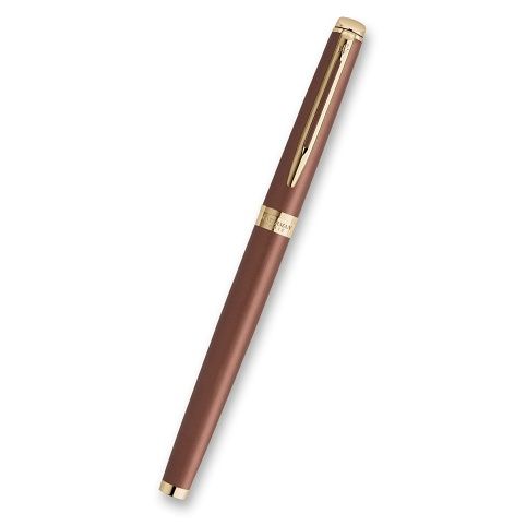 Roller Waterman Hémisphére The Understated Edit Copper Red GT s tělem a víčkem z nerezové oceli povrchově upravené metalickým lakem v barvě copper red. V kombinaci s doplňky potaženými světlým zlatem a úchopovou částí z černé pryskyřice.