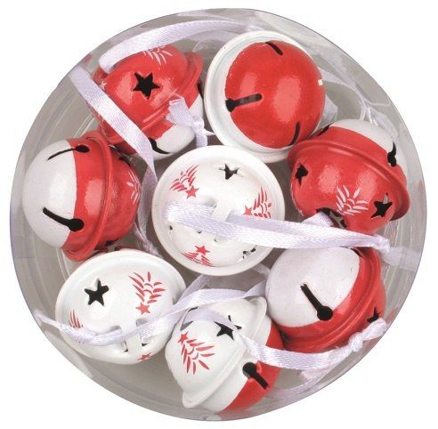 Rolničky na zavěšení červenobílé se stromečkem 3 cm, 8 ks