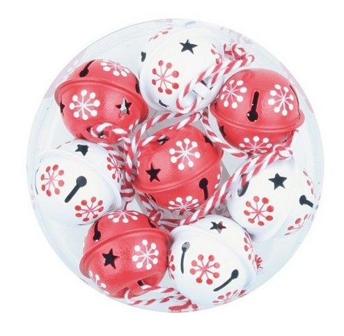 Rolničky s potiskem 3 cm, 8 ks, červené a bílé