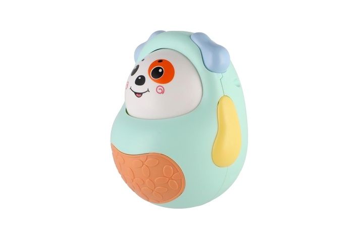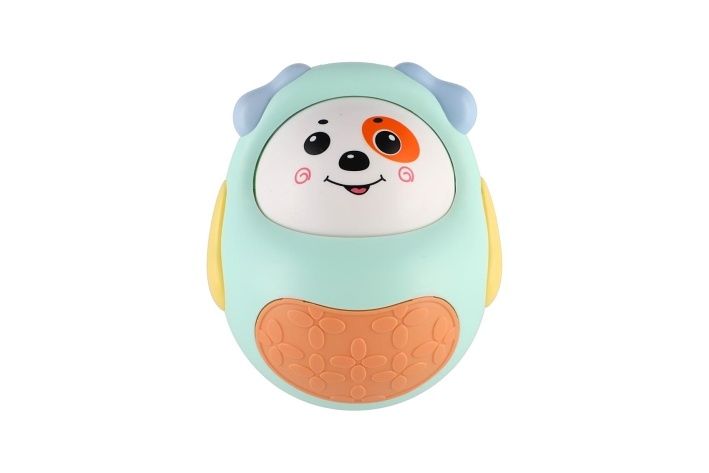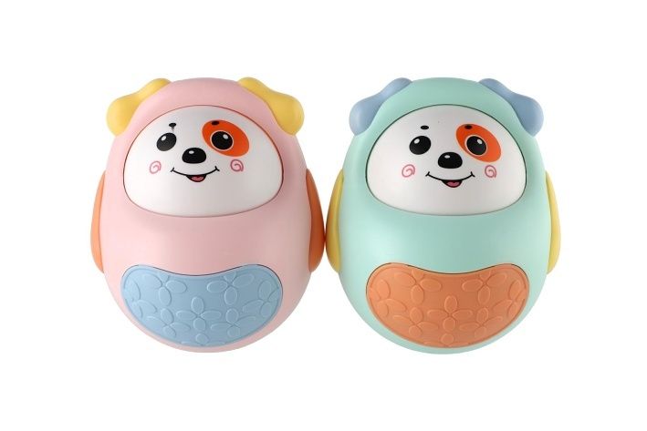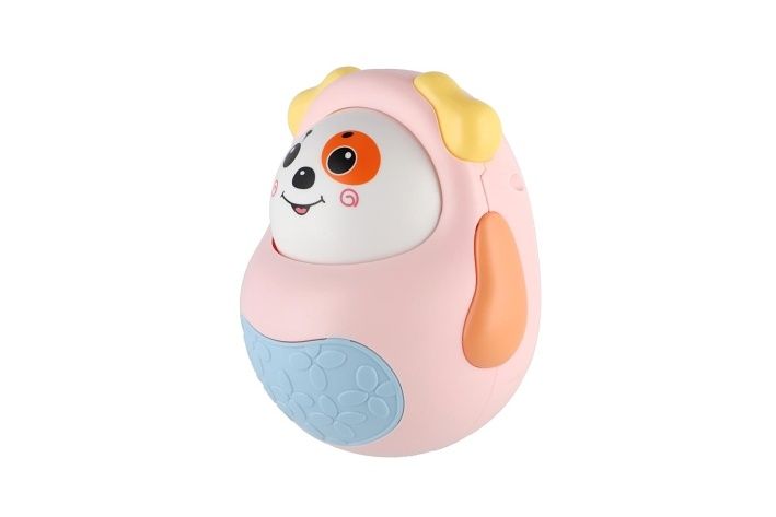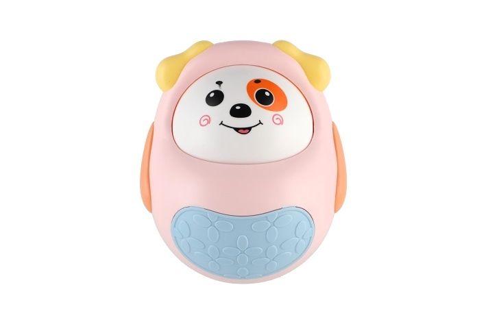 Veselý pejsek, který se nikdy nepřevrátí! Tato roztomilá plastová hračka ve stylu „roly poly“ se po postrčení houpe ze strany na stranu a vydává jemné zvuky, které zaujmou pozornost nejmenších dětí. Pomáhá rozvíjet sluch, zrak a koordinaci pohybů.