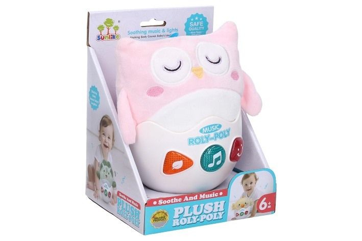 Roly-poly plyšová sova s efekty. Velikost 17cm. Baterie 2xAAA nejsou součástí. Světelné a zvukové efekty.