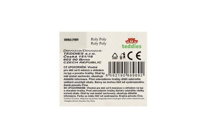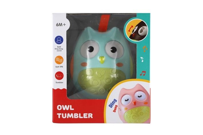 Hračka se zakulaceným podstavcem a rolničkou uvnitř, která vydává příjemný zvuk při pohybu. Podporuje rozvoju zraku, sluchu a koordinaci. Sovička se hýbe ze strany na stranu.