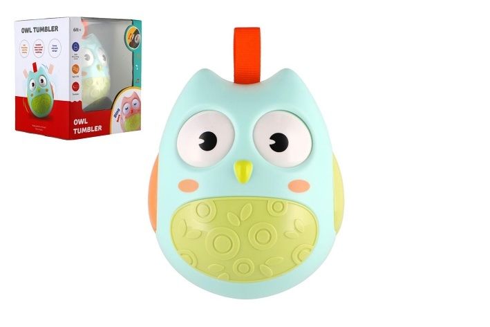 Hračka se zakulaceným podstavcem a rolničkou uvnitř, která vydává příjemný zvuk při pohybu. Podporuje rozvoju zraku, sluchu a koordinaci. Sovička se hýbe ze strany na stranu.