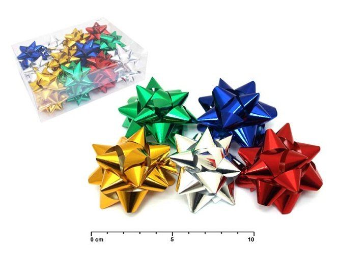 Metalová rozetka neboli kokarda. Ideální pro moderní ozdobení dárku. Rozetka má na spodní straně lepící pásku pomocí které ji připevníte na krabičku. Uvedená cena je za jeden kus. průměr: 8 cm šířka stuhy: 2 cm