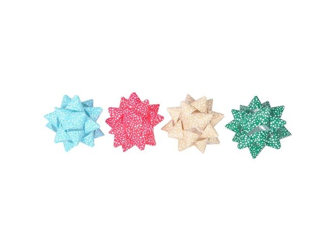 Rozetka s potiskem bílých puntíků v mixu barev. Ideální dekorativní prvek, nejčastěji používaný k ozdobení dárkových balíčků a slavnostních balení. Dodává dárkům či dekoracím estetický a slavnostní vzhled, zejména při příležitostech, jako jsou Vánoce, narozeniny nebo jiné oslavy. Ozdobte své dárky stylově! Je snadno použitelná díky samolepicí zadní straně. Balení: 50 ks Průměr: 65 mm Šířka stuhy: 15 mm Barva: světle modrá, tmavě růžová, krémová, zelená Všech 50 ks je baleno v sáčku. Uvedená cena je za 1 ks.