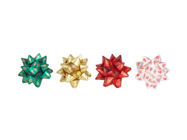 Rozetka s potiskem vloček a stromků v mixu barev. Je ideální pro zdobení dárků a slavnostních balení, dodává jim elegantní a slavnostní vzhled. Obvykle se používá při speciálních příležitostech, jako jsou Vánoce, narozeniny nebo jiné oslavy. Je snadno použitelná díky samolepicí zadní straně. Balení: 50 ks Průměr: 50 mm Šířka stuhy: 10 mm Barva: zelená, zlatá, červená, bílá Všech 50 ks je baleno v sáčku. Uvedená cena je za 1 ks.